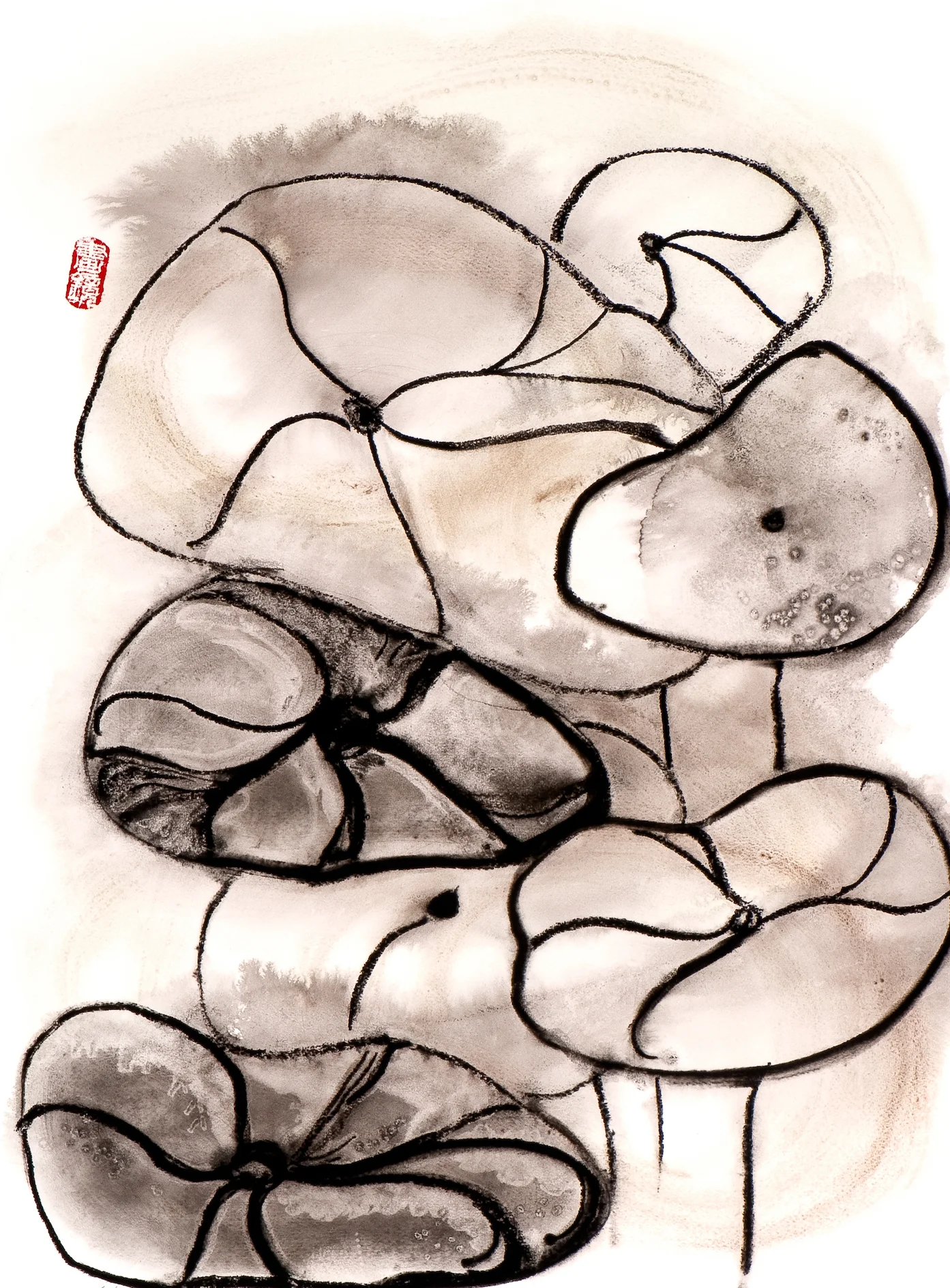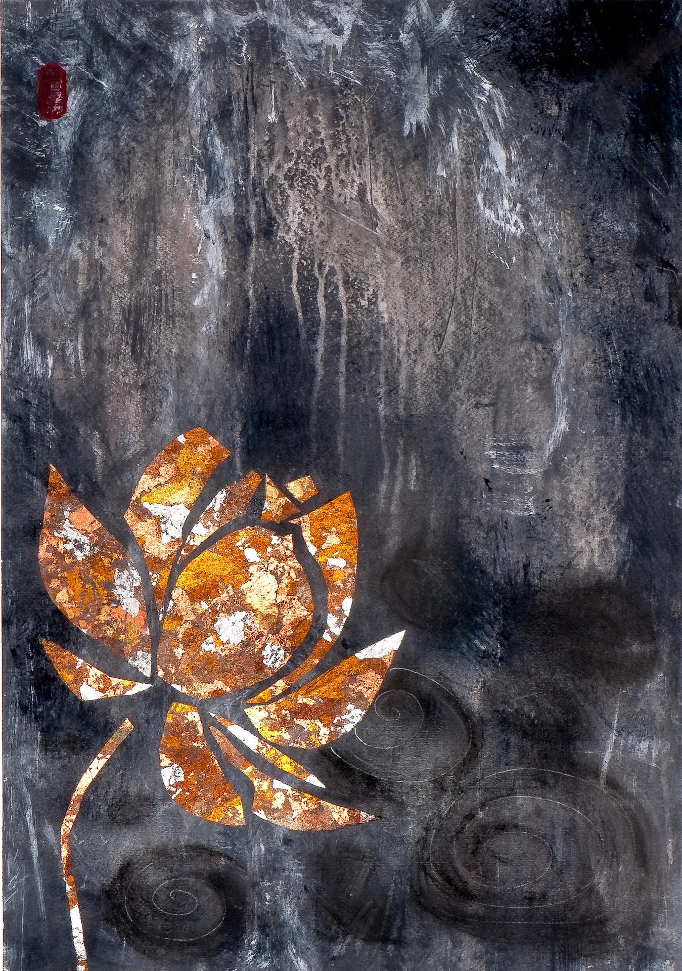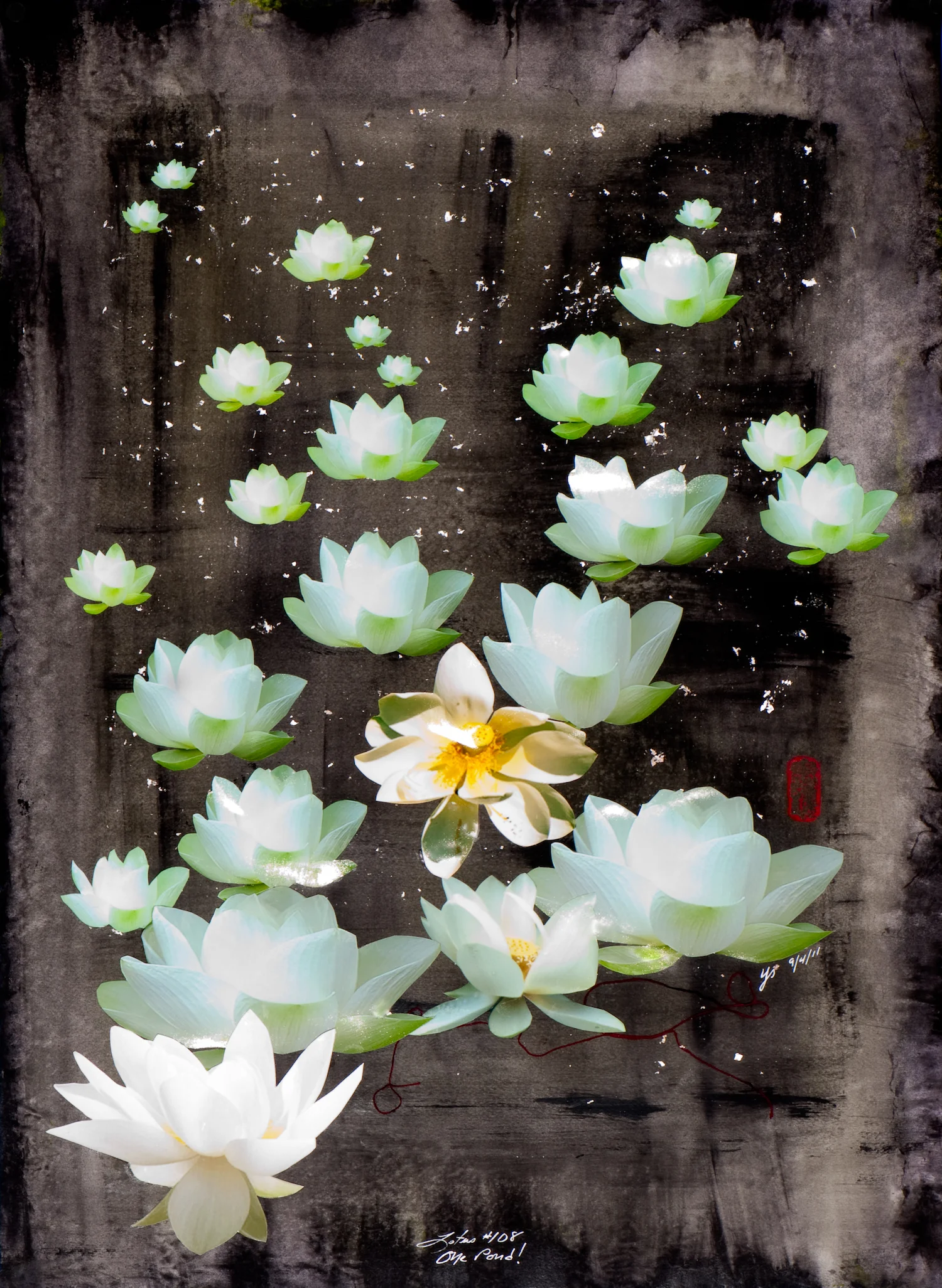 These images are selected from a collection of 108 paintings of the lotus completed over a period of two years. I used a wide variety of materials and techniques. All are on 22x30 cotton paper.
