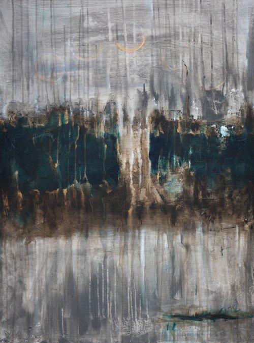 22×30 inch watercolor with semi ink and sterling silver leaf