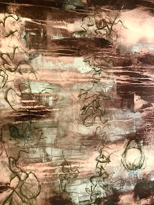 Process painting. Creative process as contemplative practice. Art practice. The Painting Mind body of work is an ongoing series. It is my attempt to approach the canvas with an open mind and heart. To observe and describe the flow of thoughts, sensations and feelings I experience without judgement, narrative or attachment. What does mind look like the moment before a thought forms? A feeling before it can be named? Most of these paintings are 30x40 or 40x60 inches. Acrylic (some with added ground pumice) on canvas or cold press watercolor paper.